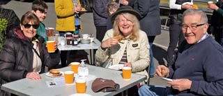 For a second year, St Michael’s ‘pop up’ cafe serving buttered hot cross buns and hot drinks appeared in The Square, Amberley, on Good Friday. And once again the sun shone! A cheerful crowd of neighbours, families, visitors and dogs enjoyed the opportunity for a chat while the traditional buns, marked with a cross, reminded us of the significance of the day.