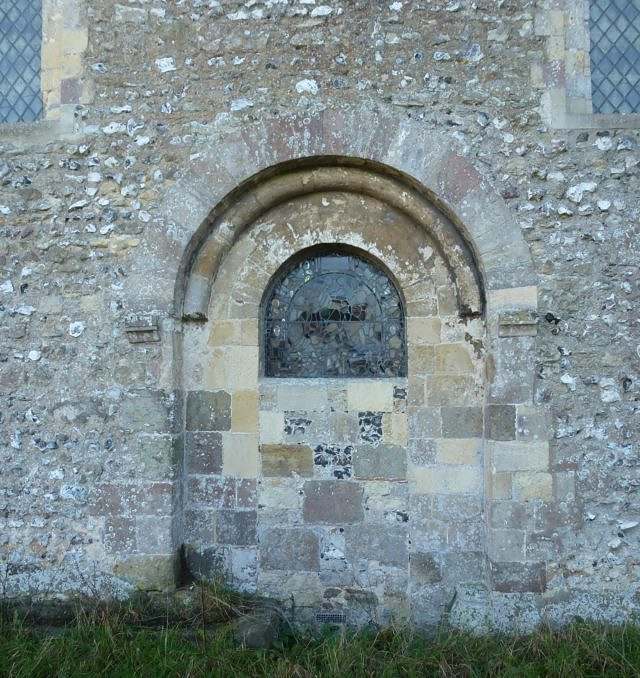 • Blocked doorway; Norman windows