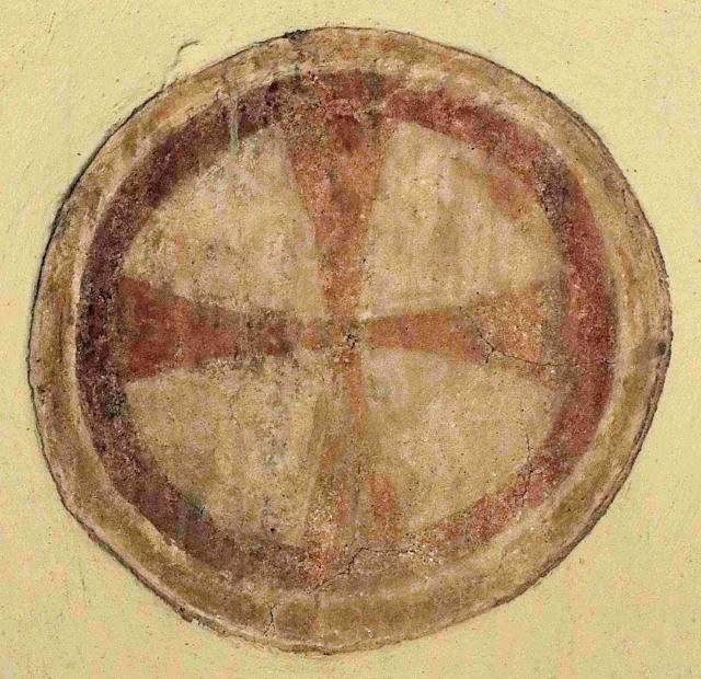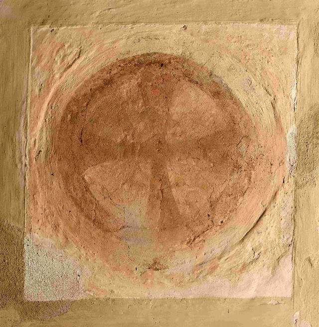 Two other consecration crosses on the aisle wall, to the west side of the south door, were obliterated in 1864. A large amount of internal plastering was removed then and much wall painting also, we must assume.