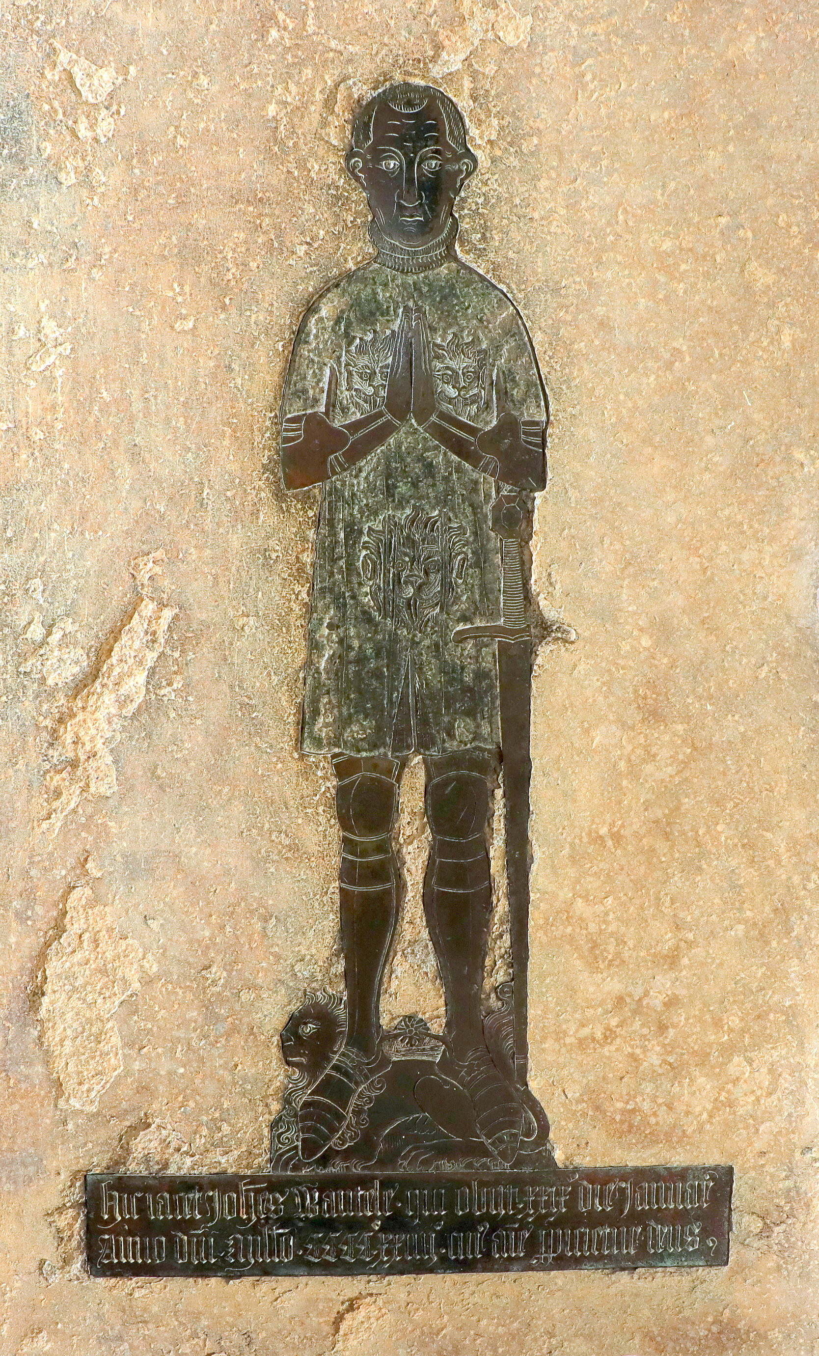 To the left of the aisle altar, a tombstone with its brass is set against the wall. This has the inscription, in Latin, “Here lies John Wantele who died on 29 January 1424, on whose soul may God have mercy.”