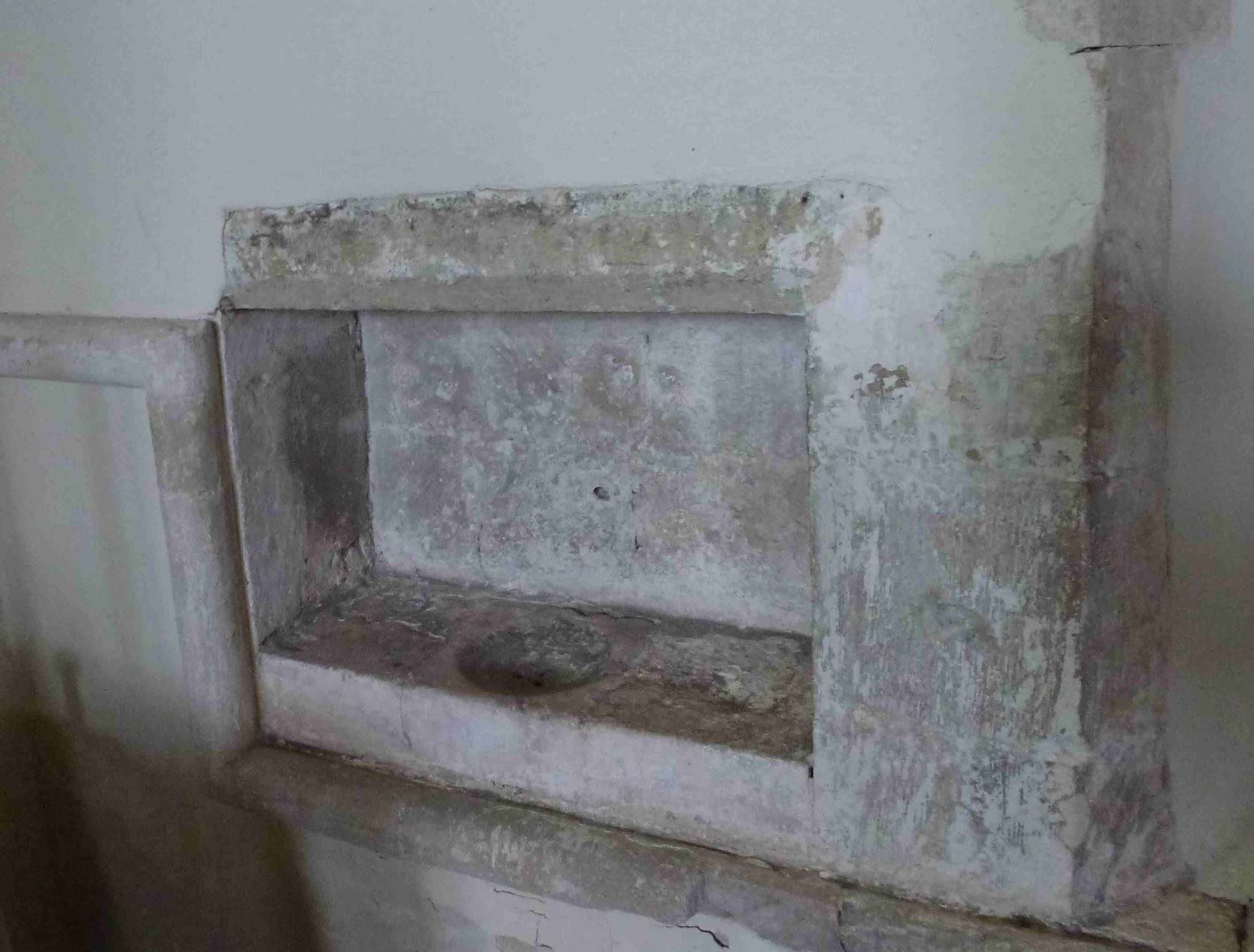 The presence of the piscina, which the string moulding demonstrates must be original, shows that there must always have been an altar here, as opposed to the aisle providing additional seating for the normal congregation. Some churches have an opening, called a squint at the side of the chancel arch to allow people in the aisles a view of the sanctuary. That there is no squint at Amberley tends to confirm that the aisle was always essentially separate from the nave, and that services did not run at the same time as the main Mass being said at the high altar. The squint was used only by the priest at the side altar to synchronise his raising of the Host with the priest in the chancel.