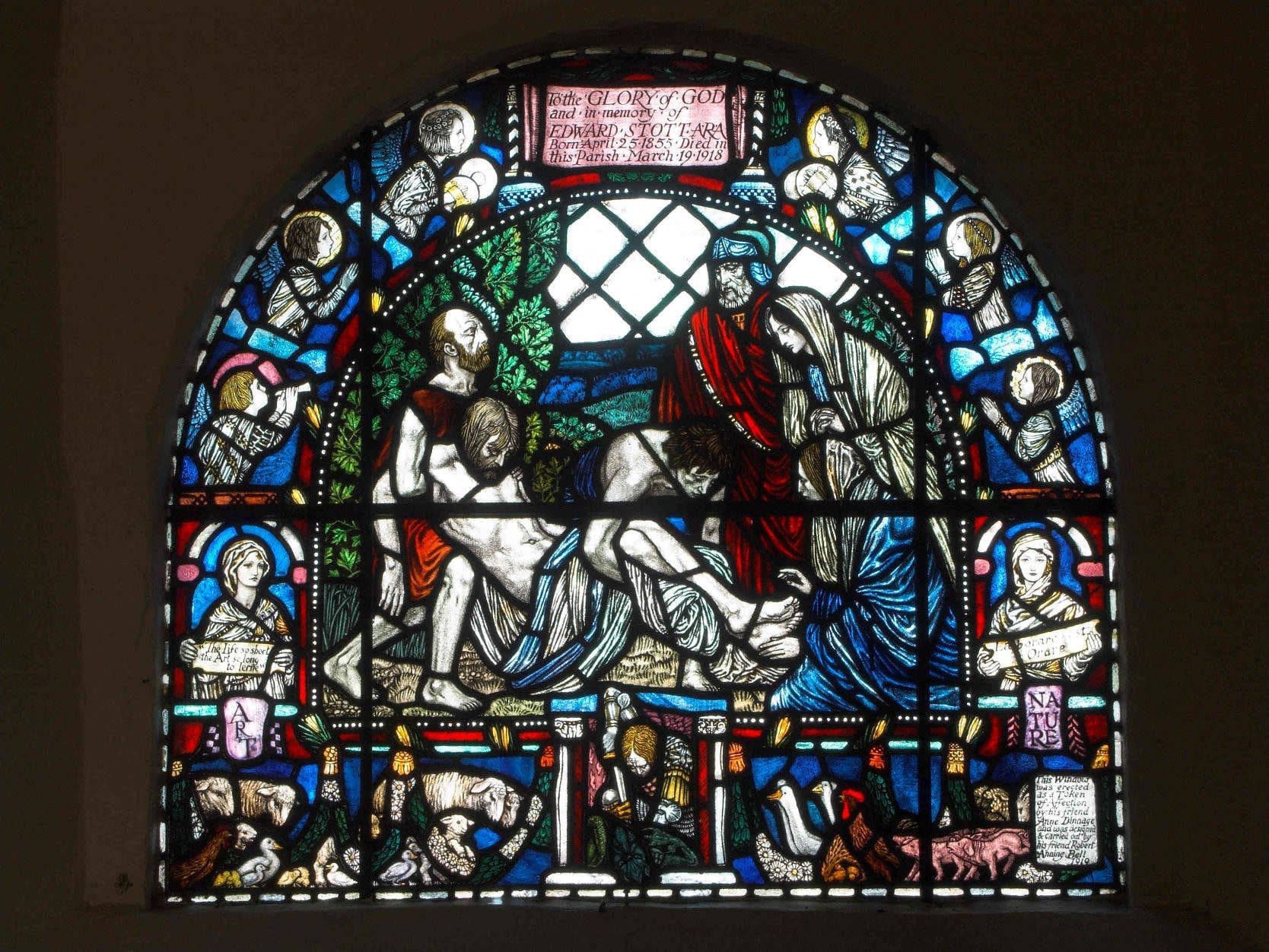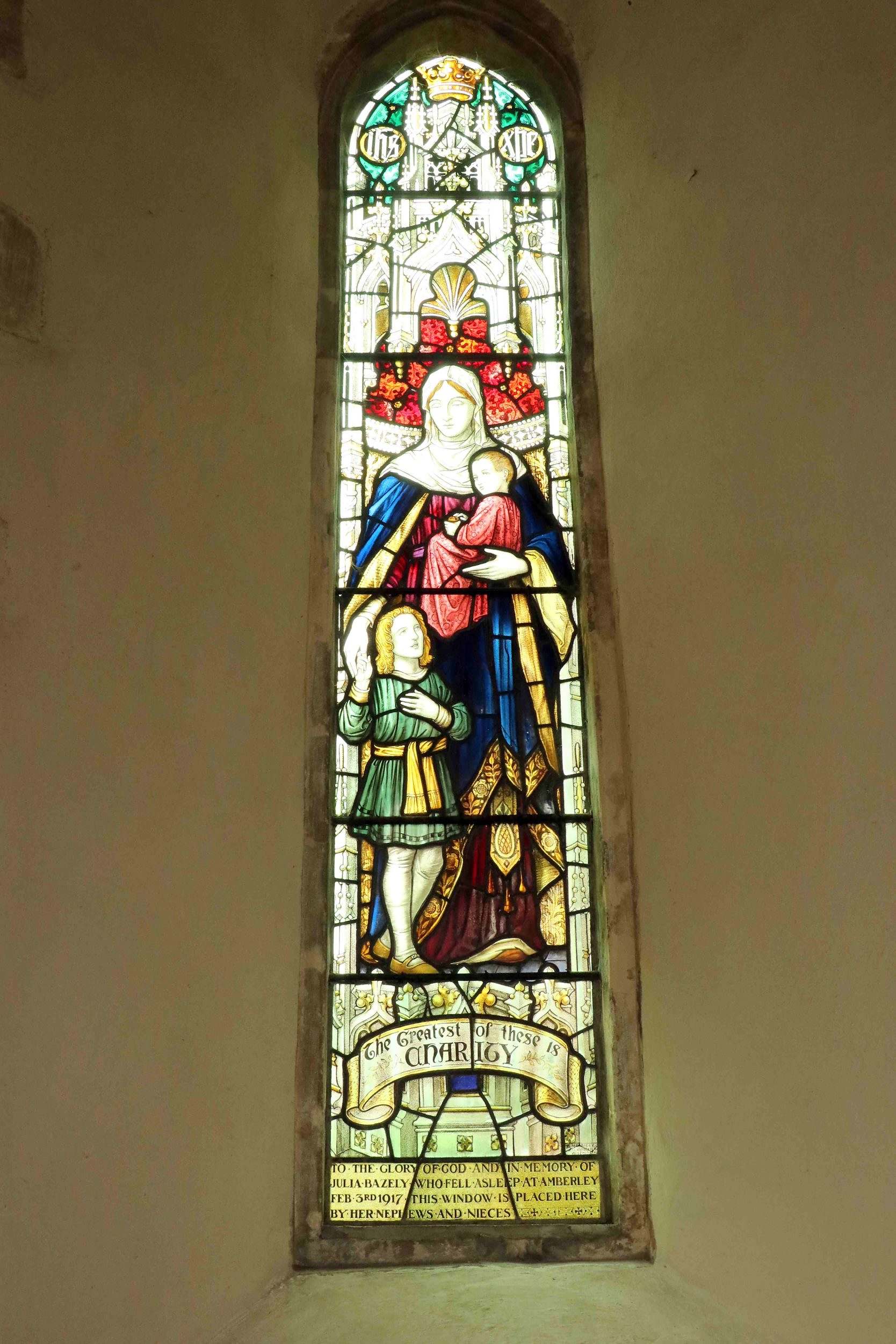 The window is by Morris & Co, and represents Charity (from 1st Corinthians 13:13: “The greatest of these is Charity”.