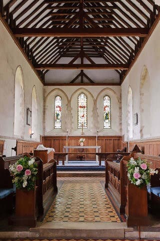 The pretty church, dating from the 12th Century, can seat a congregation of 120. There is a set of five bells that can be rung to celebrate your marriage. A resident choir can lead the singing and perform anthems if you wish.